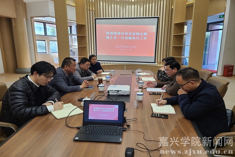 2月23日下午,嘉兴市发改委副主任顾志刚、综合处处长王迪一行来亚洲色吧 交流指导工作。亚洲色吧 院长文雁兵、党委书记施敏颖、经济系主任唐铁球、国经系主任王焕祥参加交流。