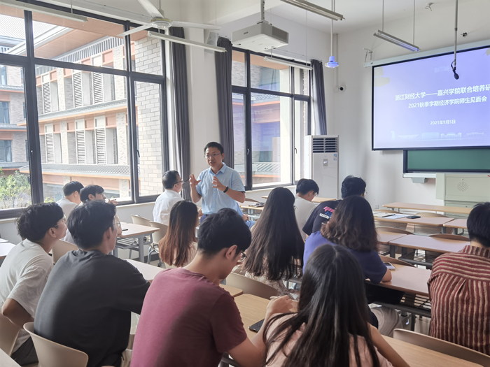 94日晚上,召开联培研究生第一次班会。院长文雁兵教授与同学们进行深入交流。他介绍了嘉兴学院的历史沿革和嘉兴经济社会发展特点,亚洲色吧 的发展现状和未来愿景,以及联培工作的规划安排,勉励大家能谨遵“勤慎治学、方正为人”的校训和“至善致远、唯实惟新”院训,安心生活、安心学习,珍惜建党百年之际来嘉兴学习和成长的计划,勇于创新,刻苦钻研,在嘉兴学院取得突出成绩。