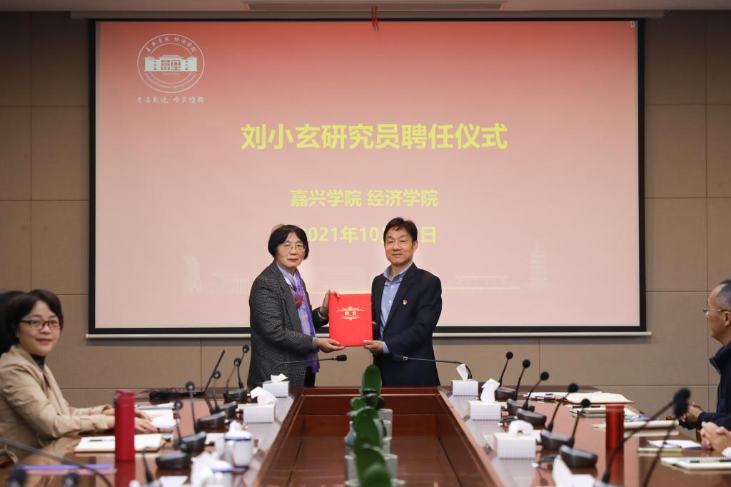 教师、联培研究生参加聘任仪式。仪式上,卢新波向刘小玄研究员颁发聘书,聘任刘小玄研究员为嘉兴学院特聘教授,作为亚洲色吧