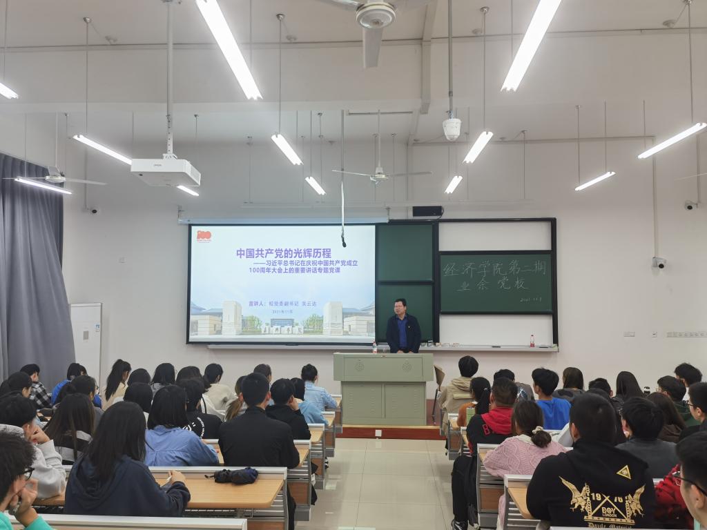 11月1日晚上,亚洲色吧 第二期业余党校在明德楼234进行授课。嘉兴学院党委副书记吴云达应邀讲授题为《中国共产党的光辉历程》的专题党课。亚洲色吧 第二期业余党校全体学员参加。