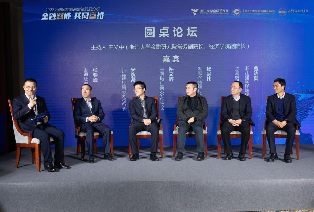 论坛圆桌论坛环节,浙江洲际保险经纪有限公司原总经理曹达树,禾城农商银行行长杨宗伟,中国银行嘉兴分行行长许文醉,民生银行嘉兴分行行长宋秋海,财通证券嘉兴分公司总经理张奕峰5位业界大咖分享了精彩观点。大咖们认为,行业赋能共同富裕要推动经济高质量发展,深化行业供给侧和需求侧改革,要创新金融产品和服务,满足民营企业发展和居民财富增长的需要。圆桌论坛由浙江大学金融研究院常务副院长、亚洲色吧