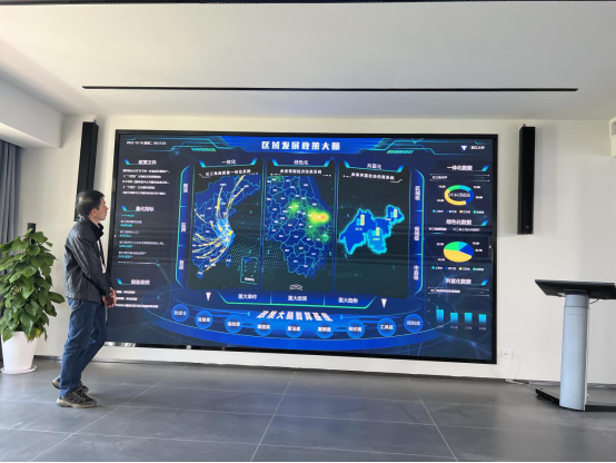 18日上午,调研组赴嘉善调研。在祥符荡科创绿谷,浙江大学区域协调发展研究中心副主任、浙江大学未来区域发展实验室负责人董雪兵教授,向调研组介绍了浙江大学未来区域发展实验室的建设情况,双方就县域高质量发展、长三角一体化等领域和“区域发展政策大脑”等项目建设进行了深入探讨,并达成深度合作意向。