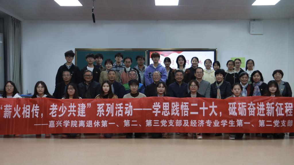 2022年11月14日下午,经济专业学生第一、第二党支部联合嘉兴学院离退休第一、第二、第三党支部在兴礼楼210开展了以“学思践悟二十大,砥砺奋进新征程”为主题的党日活动。