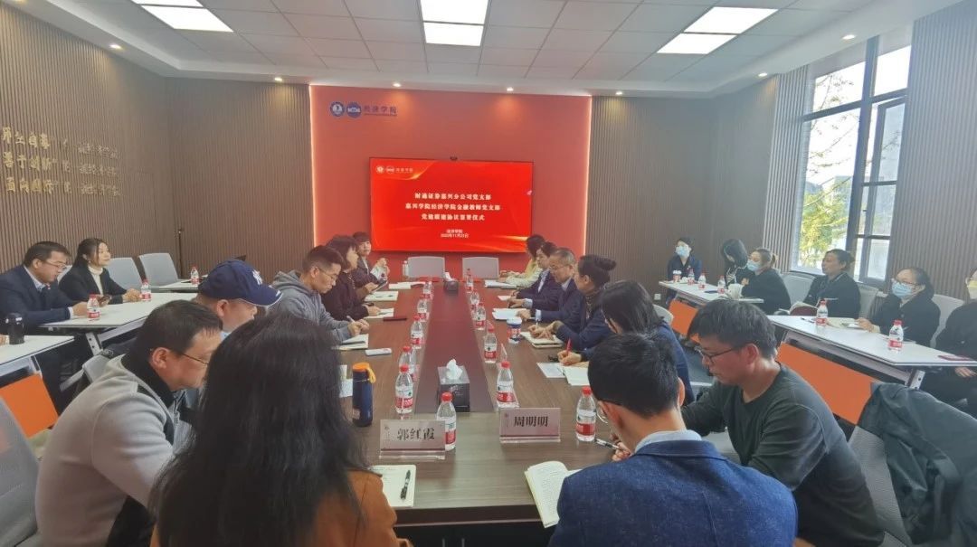 近年来的快速发展表示祝贺,并表示,财通证券嘉兴分公司一直以来都高度重视党建工作,相信通过与金融教师党支部的党建联建,共同研究探讨金融新领域、新知识,为公司的业务发展注入新的活力。在活动现场,两个党支部共同签署了支部联建协议,标志着双方的合作正式进入实质性阶段。