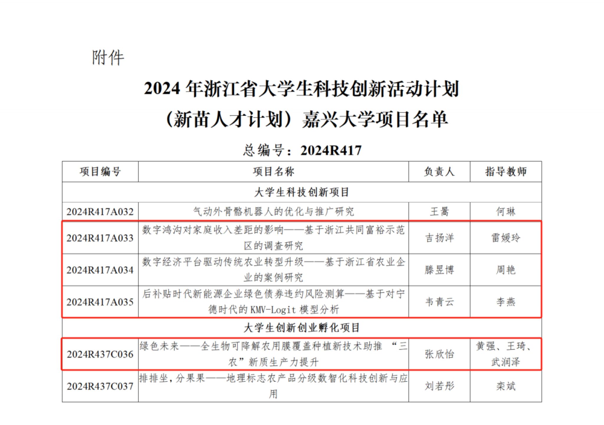 【经院喜报】亚洲色吧 获4项2024年浙江省大学生科技创新活动计划 (新苗人才计划)立项