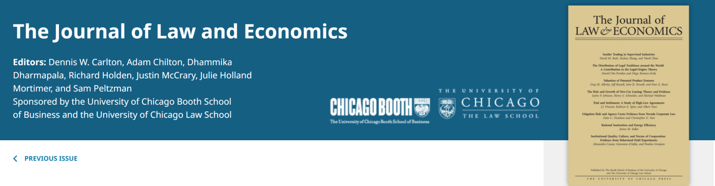 JLE由美国芝加哥大学于1958年创办,年发文量28篇左右。该期刊曾发表科斯(R. H. Coase)在经济学领域最为知名的论文“The Problem of Social Cost”。该期刊是北大汇丰商学院“PHBS 50”国际顶级期刊,浙江大学经济学国际A-类期刊和上海财经大学经济学国际二类期刊。