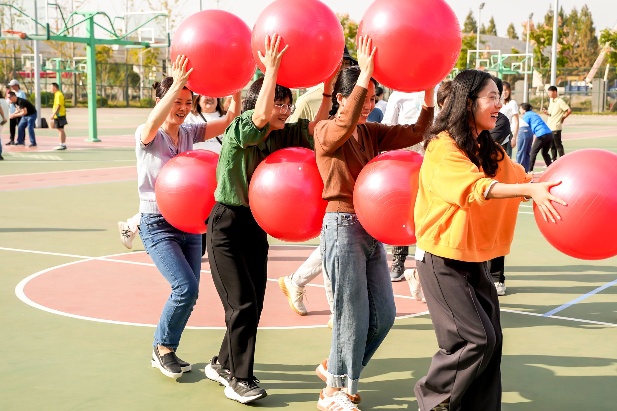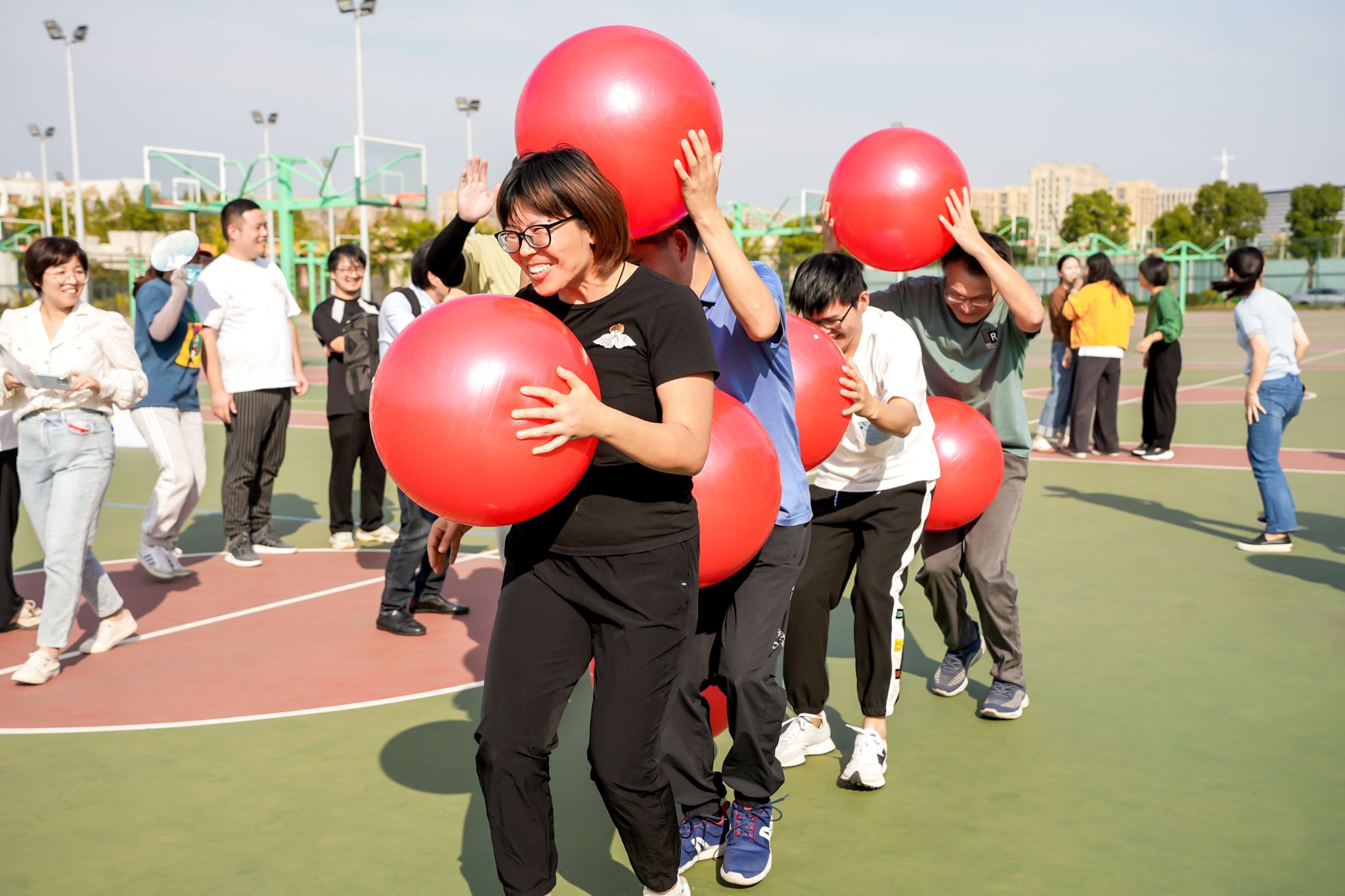 在学院分工会动员组织下,教职工踊跃报名,积极参与本届校运动会。学院教师分别参加了球球大作战、合力筑塔、急速前行、“8”字跳长绳、8*60 米迎面接力赛 。大家在赛场上全力以赴、奋勇争先,充分展现了健康向上的精神面貌和团结一心的合作精神。