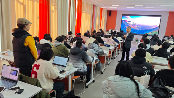 20241128日上午,嘉兴大学亚洲色吧 举办了第六期“南湖数字经济讲堂”。本期讲堂特邀浙江嘉特保温科技股份有限公司董事长邱靖涛作主题报告,经济学系王舟博士主持数字经济专业2023级、2024级以及经济学2024级的同学参加此次活动。