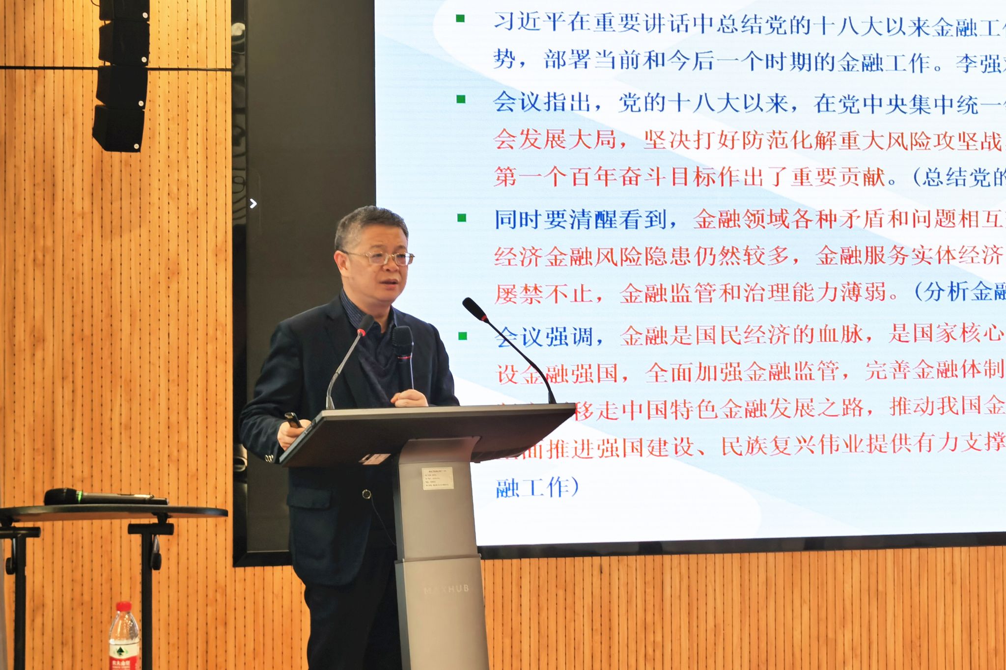 11月28日下午,由嘉兴学院亚洲色吧 、嘉兴市金融学会、嘉兴市高层次人才联谊会联合主办的南湖金融讲堂第2讲在嘉兴学院融信楼325举办。中国金融学会理事、中国人民银行浙江省分行货币政策咨询专家、浙江大学金融研究所所长、博士生导师王维安教授应邀作题为《加快建设金融强国 推动金融高质量发展——兼中央金融工作会议解读》的报告,亚洲色吧 党委书记施敏颖教授主持,来自中国人民银行嘉兴市中心支行、嘉兴银行、浙商银行、禾城农商银行等实务界专家和亚洲色吧 师生百余人参加。