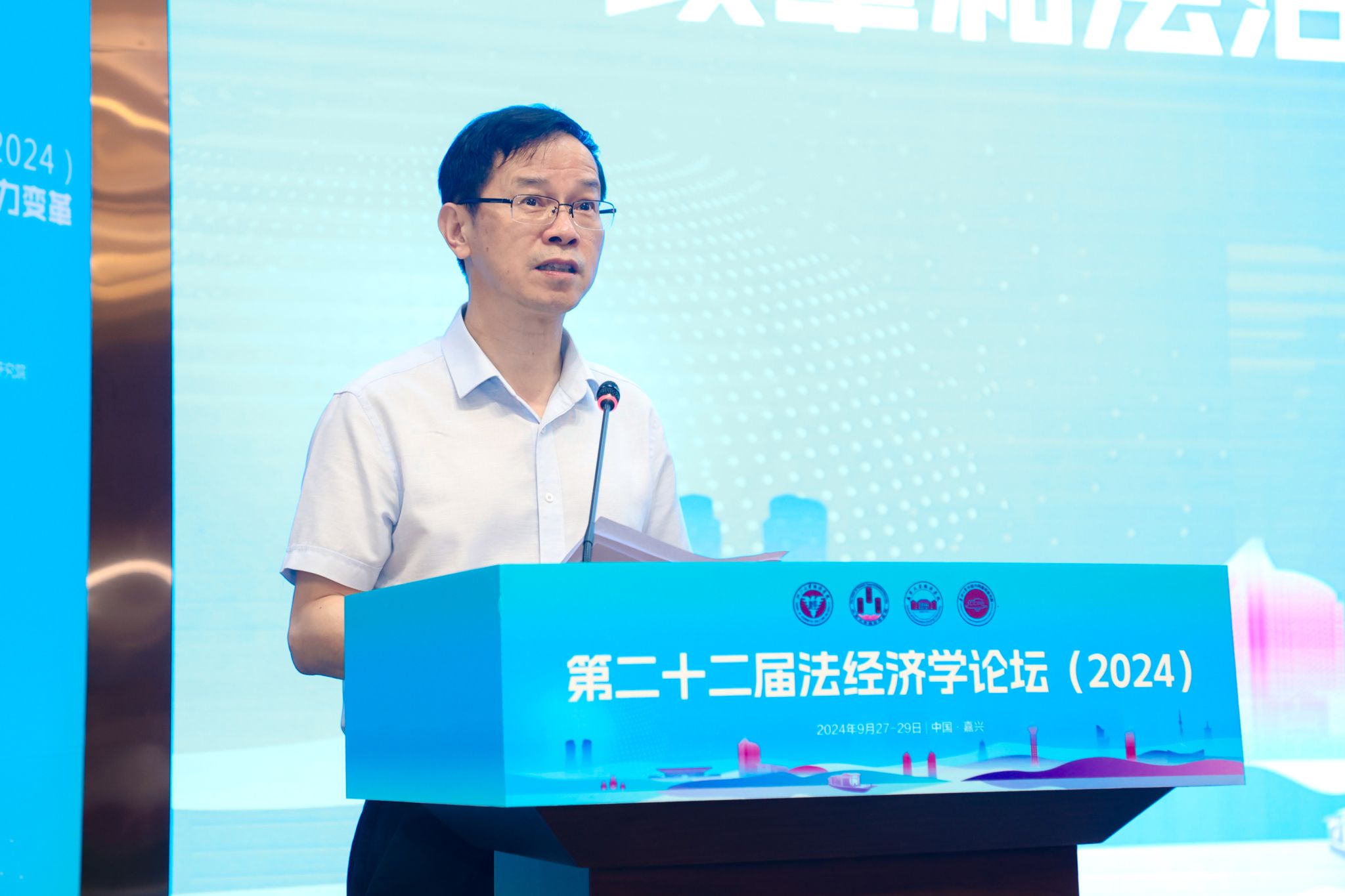 盛世豪表示,经济工作是党治国理政的中心工作,法治是党治国理政的基本方式,党的二十届三中全会明确把社会主义法治国家建设达到更高水平作为进一步全面深化改革总目标的重要内容,并提出“一个根本保证、两个重要保障”,即党的领导是进一步全面改革、推进中国式现代化的根本保证,构建高水平社会主义市场经济体制和法治都是中国式现代化的重要保障。浙江作为民营经济大省,政府和市场“两只手”良性互动,营商环境有口皆碑,很重要的一条经验就是推进法治浙江建设,以法治建设持续打造最优营商环境,为浙江经济发展实现全方位、深层次、系统性的精彩巨变提供了重要保障。他认为,本届法经济学论坛主题为“改革和法治双轮驱动下的生产力变革”,这既是对党的二十届三中全会要求进一步全面深化改革的认真解读,也是围绕如何通过改革和法治两种路径,加快形成同新质生产力更相适应的生产关系,加快形成发展新质生产力体制机制的深入讨论,具有非常重要的理论意义和实践价值。他希望,与会专家学者立足新起点,肩负新使命,把握新要求,将改革与法治紧密结合,探索赋能生产力变革的新路径、新举措。