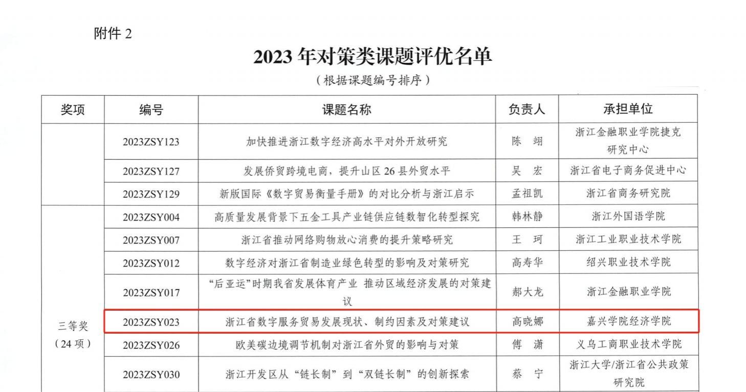 亚洲色吧 教师在浙江省商务厅2023年度对策类课题及国际贸易研究优秀成果评选中荣获佳绩