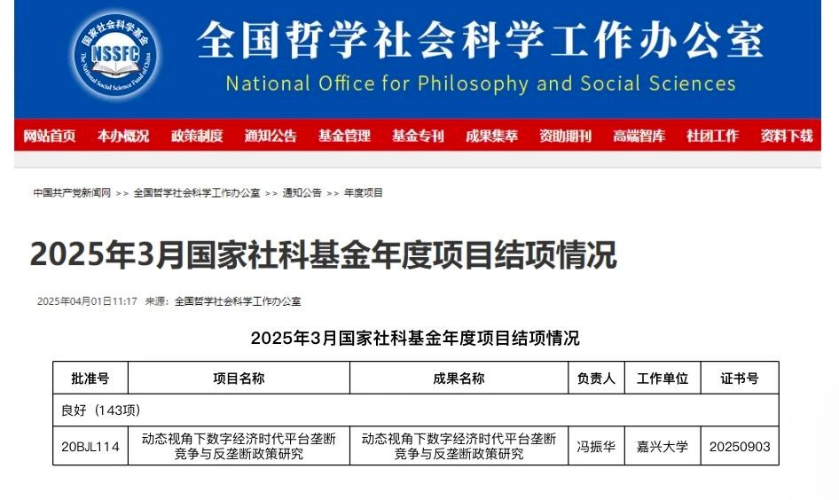 近日,亚洲色吧 冯振华副教授主持的国家社科基金一般项目“动态视角下数字经济时代平台垄断竞争与反垄断政策研究”顺利通过验收审批,鉴定等级为良好
