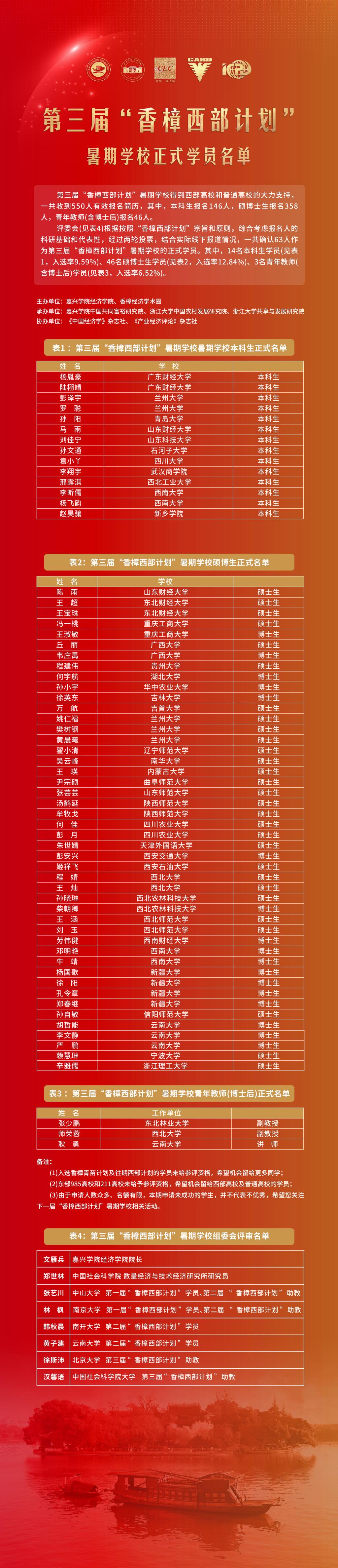 第三届“香樟西部计划”暑期学校正式学员名单
