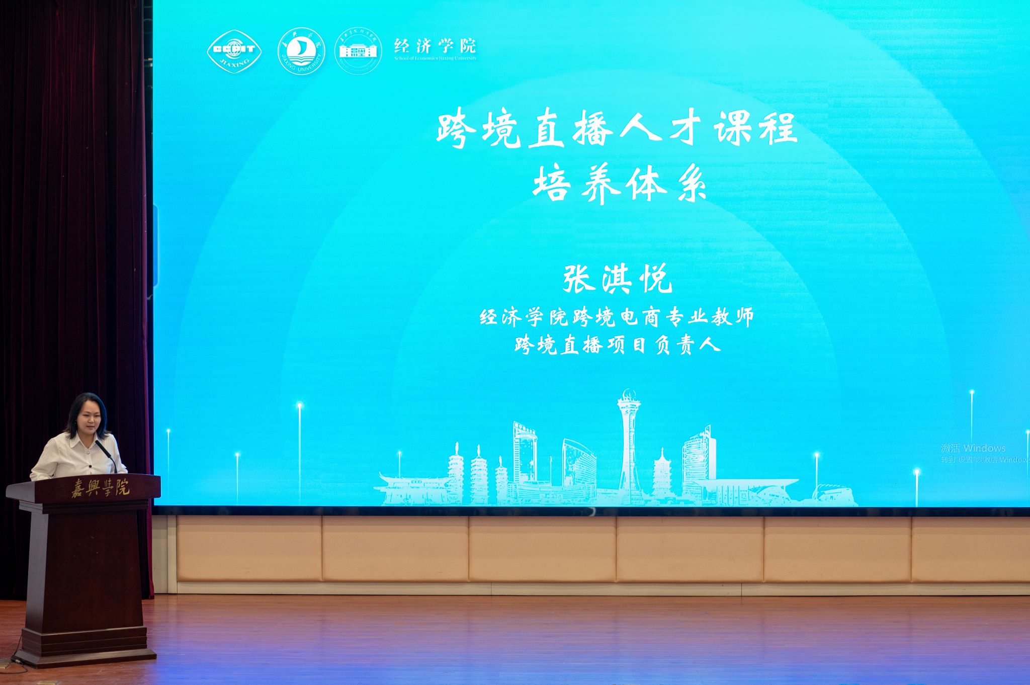 跨境电商专业教师、跨境直播项目负责人张淇悦进行了跨境直播人才培养课程体系发布,从主流跨境电商平台介绍、跨境主播基本要素、跨境直播设计、跨境直播转化率提升等四个课程模块,介绍了后续跨境主播培育培训课程体系的基本内容。