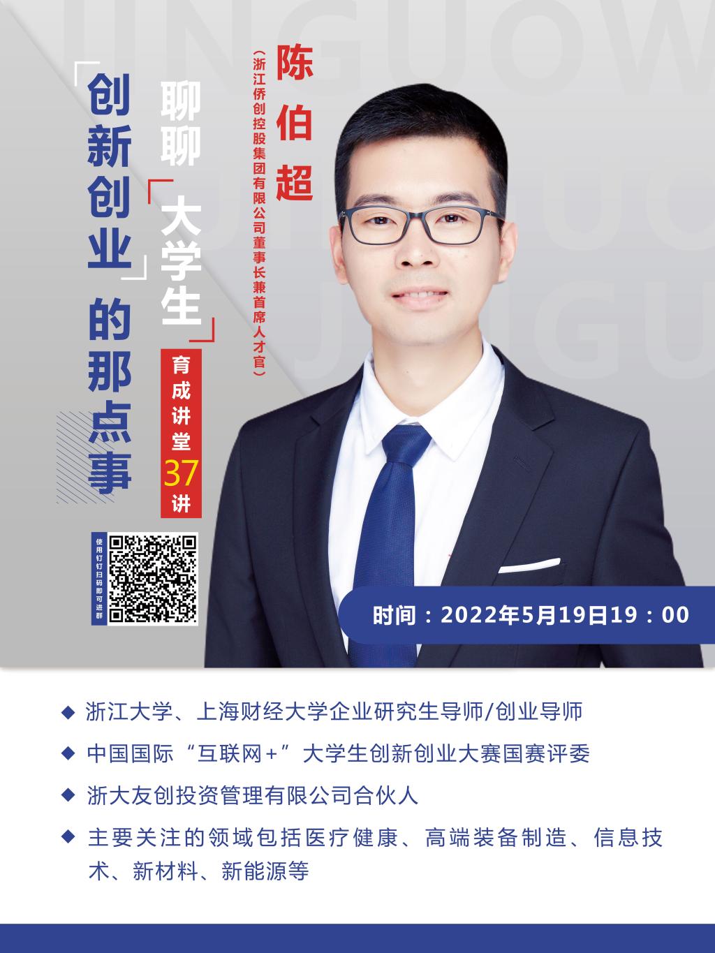 519日晚,浙江侨创控股集团有限公司董事长兼首席人才官、中国国际“互联网+”大学生创新创业大赛国赛评委陈伯超应邀作客育成讲堂第37讲,为近500名师生作题为“聊聊大学生创新创业的那点事”的云讲座。此次云讲座由创业学院主办、亚洲色吧 承办。