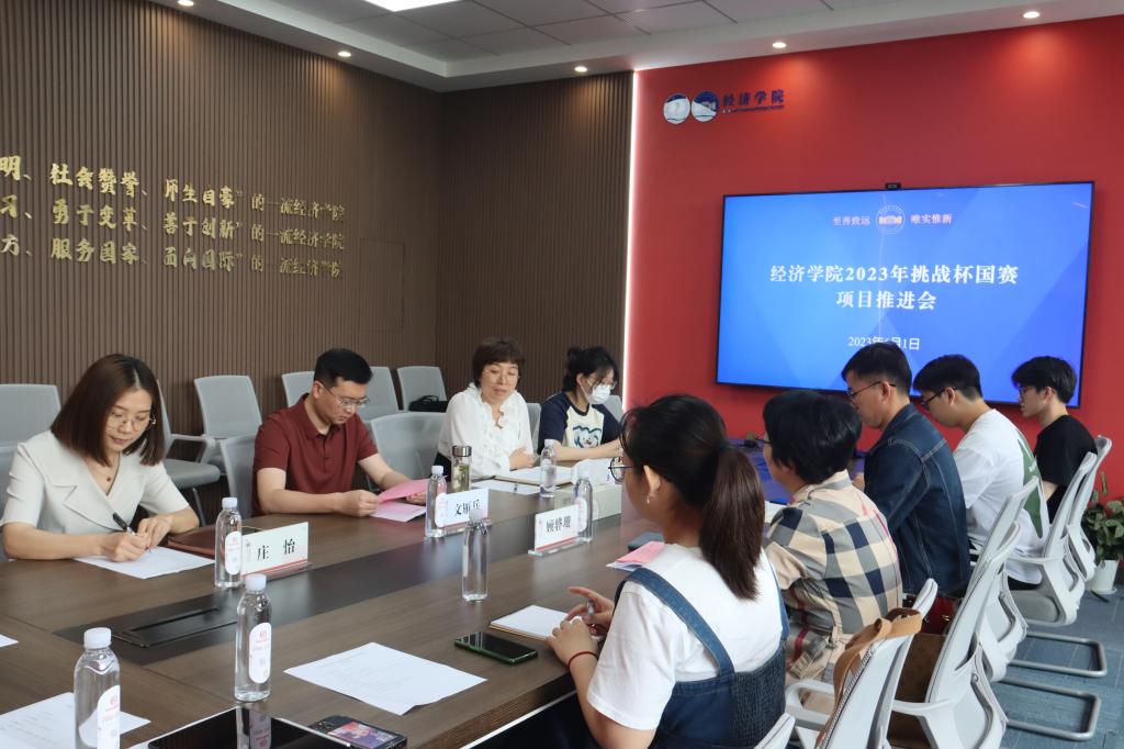 进一步推动第十届“挑战杯国大学生课外学术科技作品竞赛的备赛工作61日,亚洲色吧 2023年“挑战杯国赛项目推进会在尚德楼268召开,亚洲色吧 院长文雁兵、党委副书记庄美燕、指导教师、团干部、学生代表参加会议。