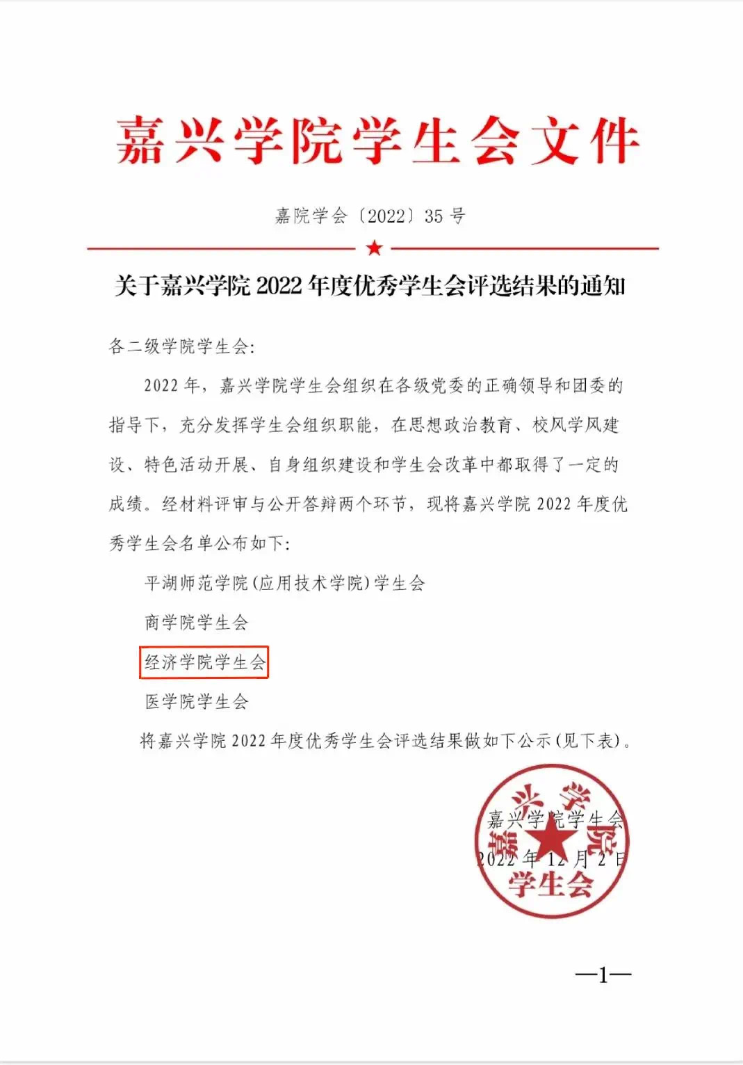 近日,在嘉兴学院2022年度优秀学生会评选中,经材料评审与公开答辩两个环节,亚洲色吧 学生会荣获“嘉兴学院2022年度优秀学生会”。