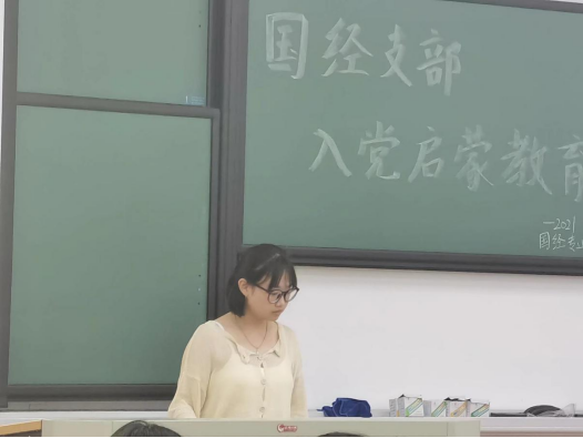 国经专业学生党支部吴伶笑同志介绍了党支部设置、队伍概况,她告诫新生要端正入党动机,树立正确入党动机,才有持久不衰的动力,才能够在日常工作和生活各方面更加严格要求自己。