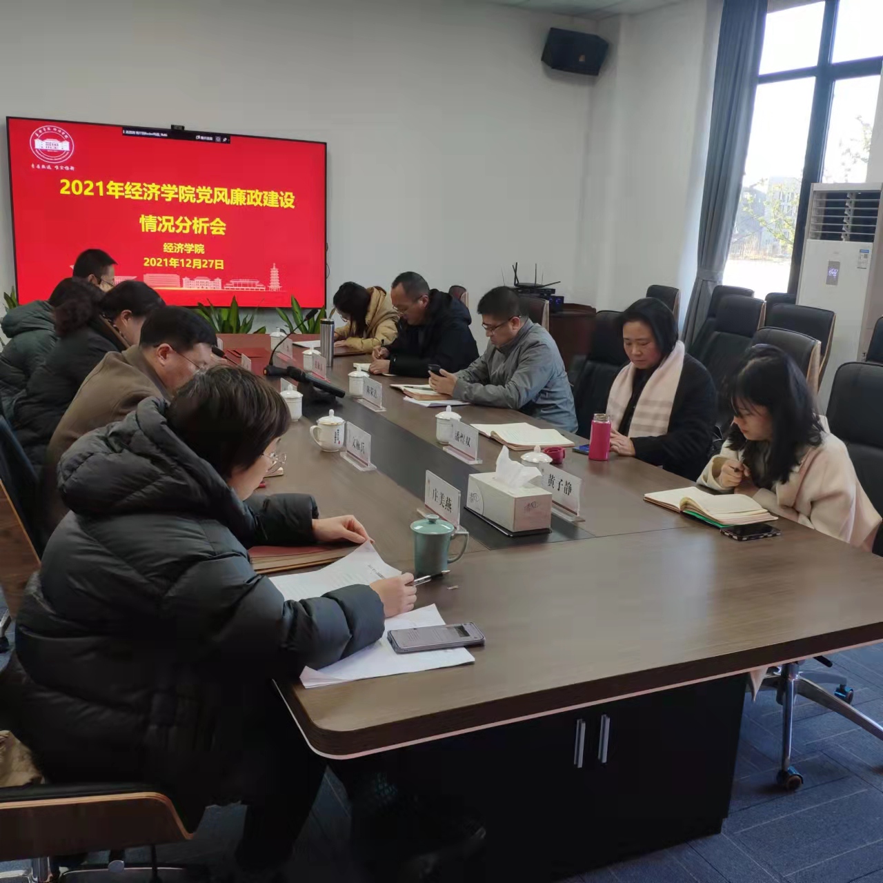 召开2021年党风廉政建设情况分析会。嘉兴学院副校长陈荣达、校纪委委员商学院院长潘煜双应邀到会指导,学院党政领导班子成员、党委委员、特约监察员参加会议。会议由学院党委书记施敏颖主持。