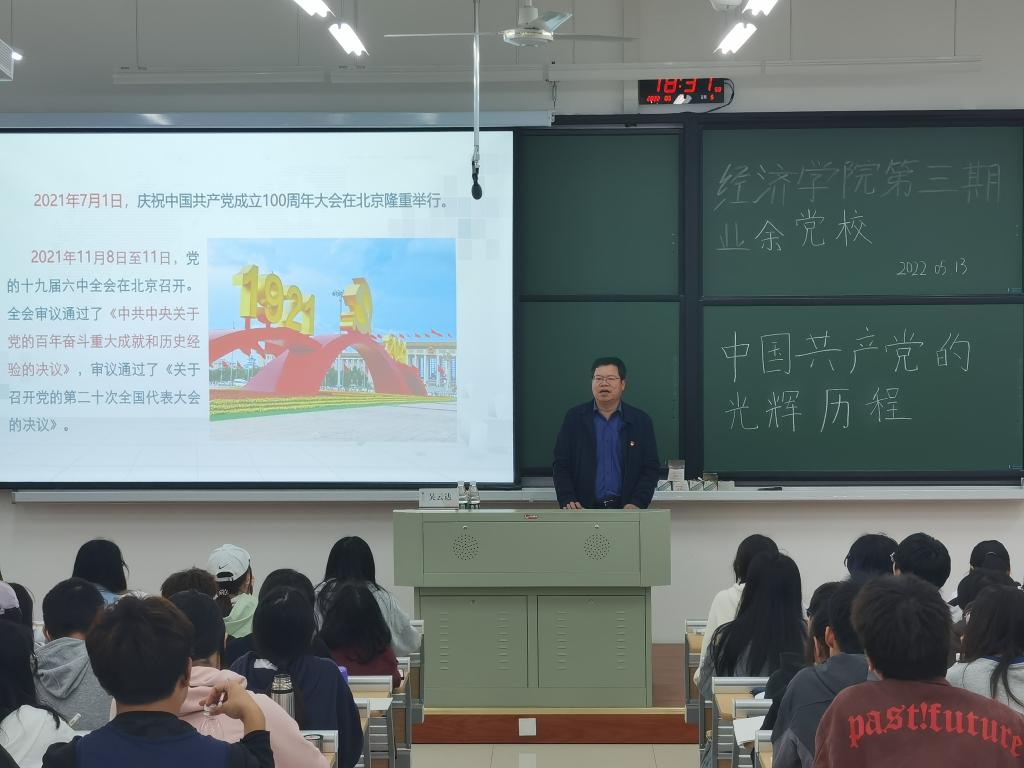 513日晚上,亚洲色吧 第期业余党校在明德楼236进行授课。嘉兴学院党委副书记吴云达应邀讲授题为《中国共产党的光辉历程》的专题党课。亚洲色吧 第期业余党校全体学员参加。