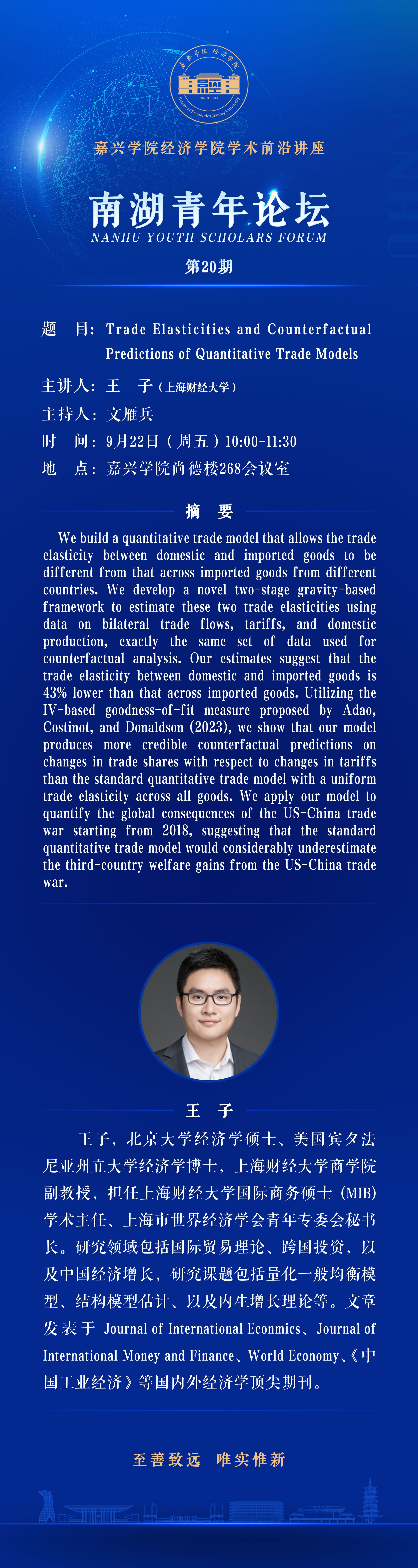 南湖青年论坛NO.20:Trade Elasticities and Counterfactual Predictions of Quantitative Trade Models
