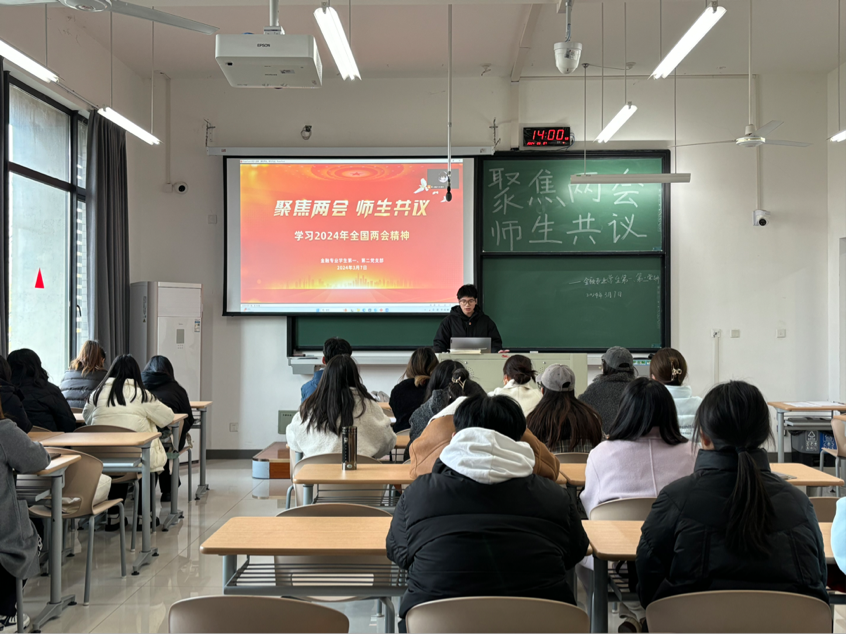 开展“聚焦两会 师生共议”专题学习交流活动,各系、党支部分别开展集体学习会。学习交流会上,大家首先原文学习《2024年政府工作报告》,围绕两会相关热点,结合自身学习、工作和生活的实际,热议两会精神。