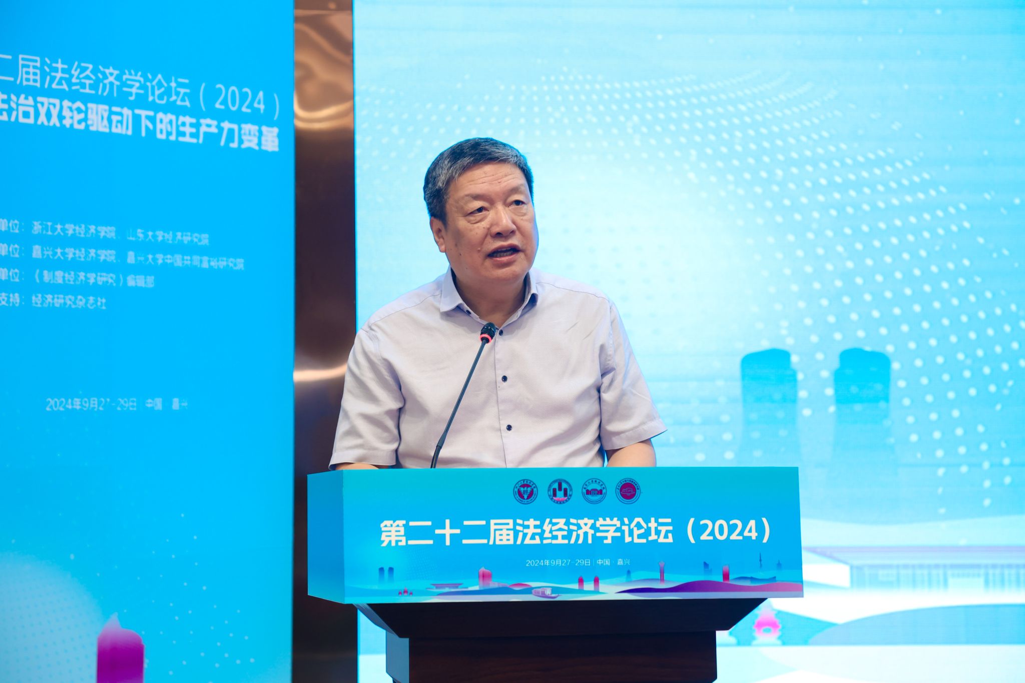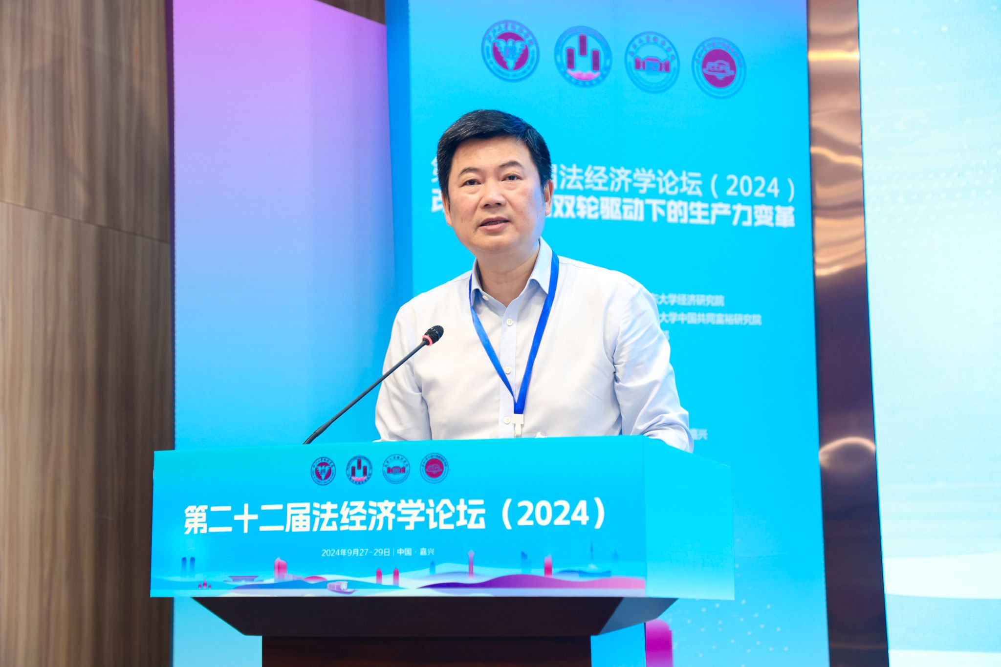盛世豪表示,经济工作是党治国理政的中心工作,法治是党治国理政的基本方式,党的二十届三中全会明确把社会主义法治国家建设达到更高水平作为进一步全面深化改革总目标的重要内容,并提出“一个根本保证、两个重要保障”,即党的领导是进一步全面改革、推进中国式现代化的根本保证,构建高水平社会主义市场经济体制和法治都是中国式现代化的重要保障。浙江作为民营经济大省,政府和市场“两只手”良性互动,营商环境有口皆碑,很重要的一条经验就是推进法治浙江建设,以法治建设持续打造最优营商环境,为浙江经济发展实现全方位、深层次、系统性的精彩巨变提供了重要保障。他认为,本届法经济学论坛主题为“改革和法治双轮驱动下的生产力变革”,这既是对党的二十届三中全会要求进一步全面深化改革的认真解读,也是围绕如何通过改革和法治两种路径,加快形成同新质生产力更相适应的生产关系,加快形成发展新质生产力体制机制的深入讨论,具有非常重要的理论意义和实践价值。他希望,与会专家学者立足新起点,肩负新使命,把握新要求,将改革与法治紧密结合,探索赋能生产力变革的新路径、新举措。