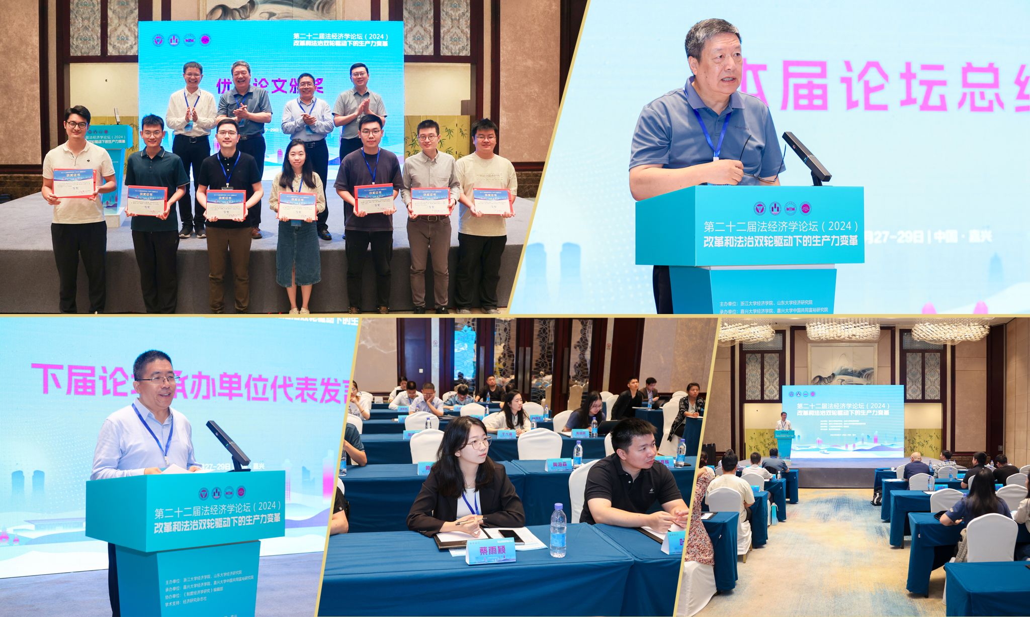 闭幕式进行了优秀论文颁奖、论坛总结、下届论坛承办单位代表发言等环节,第二十三届中国法经济学论坛将由山东大学经济研究院承办。