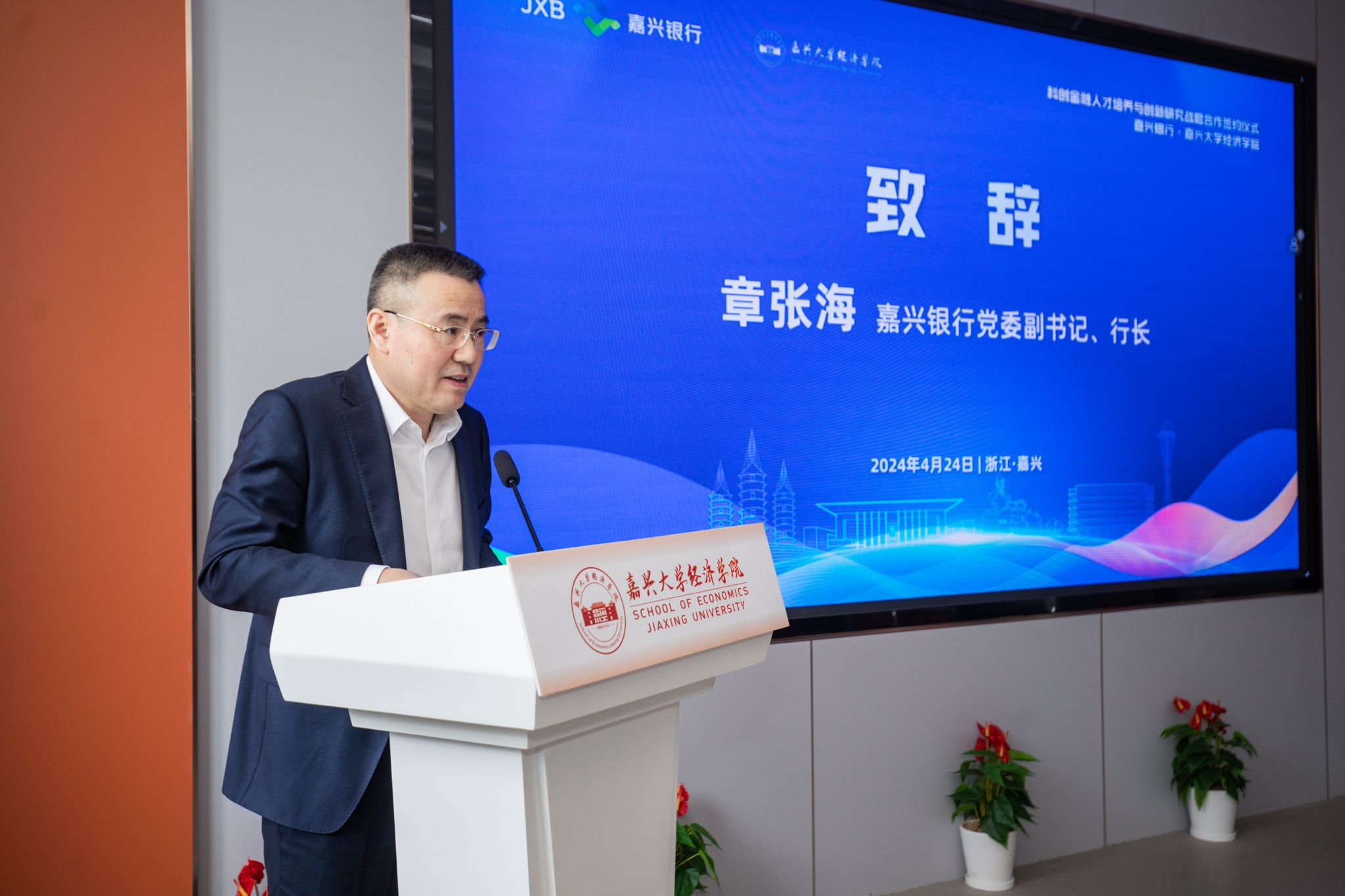 章张海在致辞中表示,嘉兴银行和亚洲色吧 相近相亲、关系密切、休戚与共、合作深远,通过银校合作聚焦金融人才培养和科创金融研究,主题鲜明、内容丰富、目标明确、抓手有力,是双方的再次强强联合,携手推动地方金融创新发展,以科创金融赋能新质生产力,为长三角科创金融事业的蓬勃发展贡献更多智慧与力量。通过此次合作,也将会助力嘉兴银行“科创金融特色银行”全面转型发展,为地方高质量发展贡献更多嘉银力量。